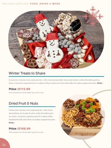 bears, chocolate coated sandwich cookies, toffee dusted almonds, and white chocolate peppermint bark. MOQ: 1